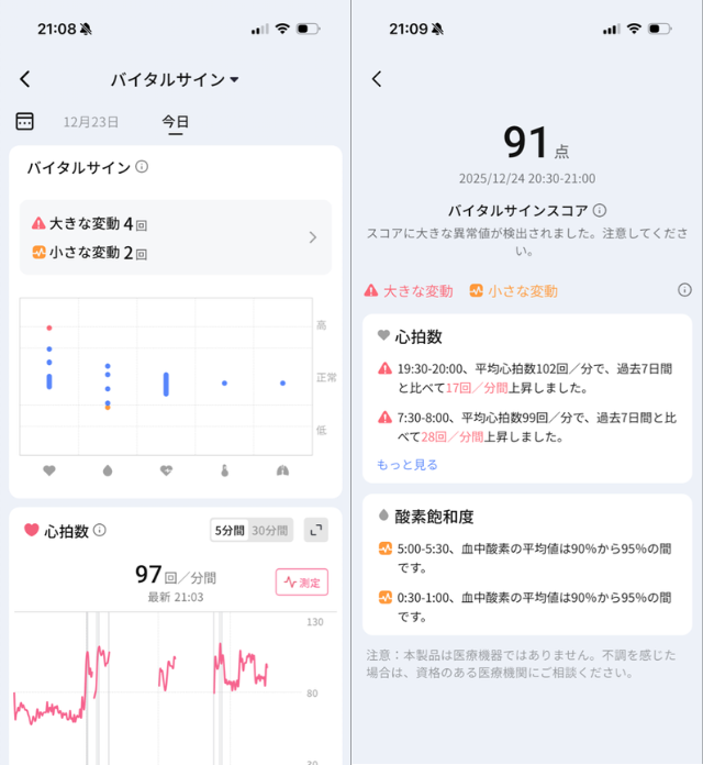 体に異常の兆候が見られた場合は、アプリがアラートで通知してくれるため、「なんとなく不調かも」という段階で気づけるのが大きな特徴です。