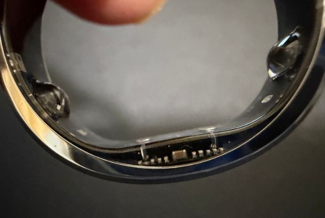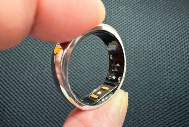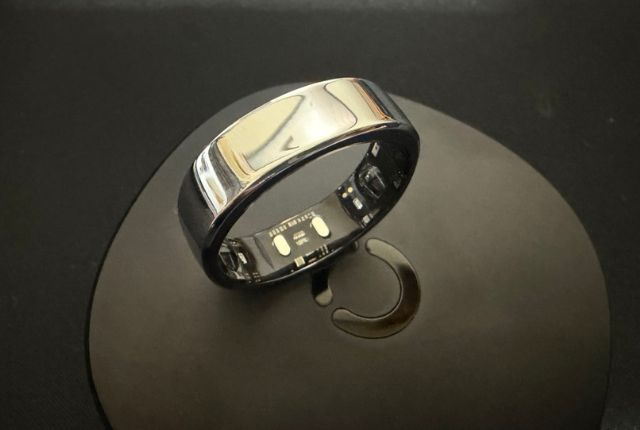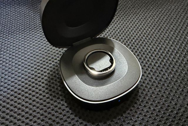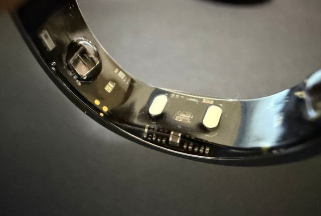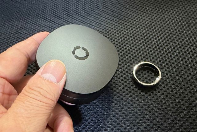 リング中央には充電用の端子、そのさらに中央には睡眠や活動量を計測する3D加速度センサーを内臓、凸部と充電端子の中央にあるセンサーは睡眠と体調を測定する皮膚温度センサーが内蔵されています。