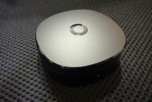 リングをケースに収納すると自動で充電、インジケーターが青点滅、充電完了で青点灯。