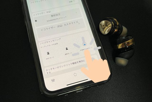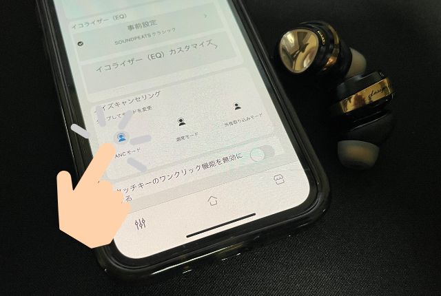 ノイズキャンセリングはアプリ画面で「ANCモード」をON。