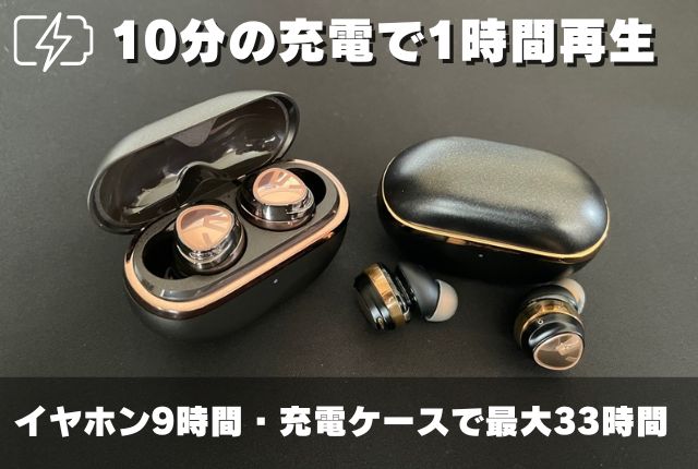 イヤホンケースの充電を満充電しておけば最大約33時間の再生ができます。付属のUSB-A to Cケーブルを接続して充電するだけです。