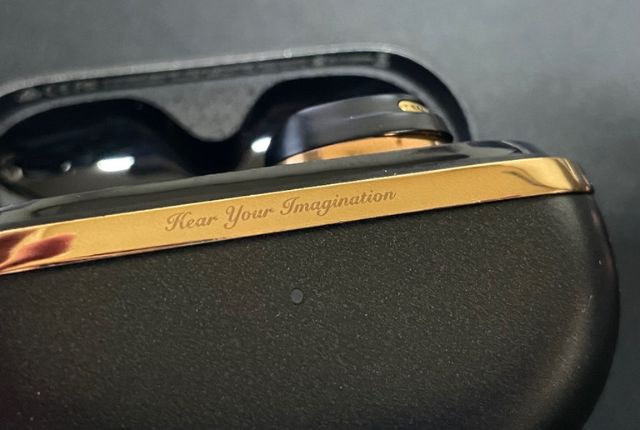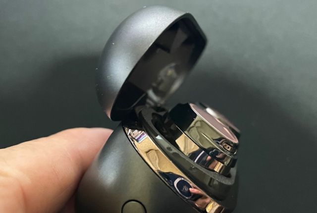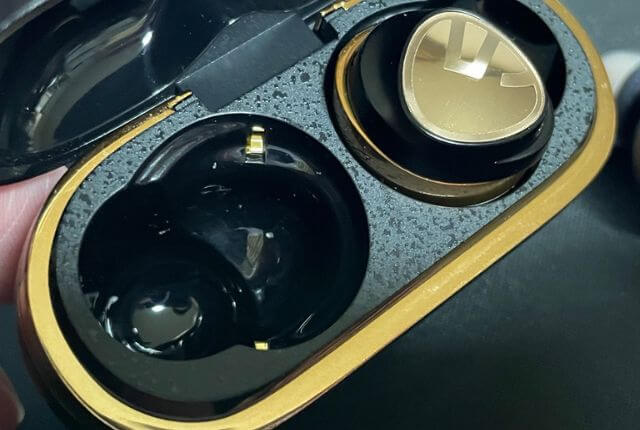 充電ケース表側。全体的に作り込みや塗装がよく持ったときの手触り感は上々です。
