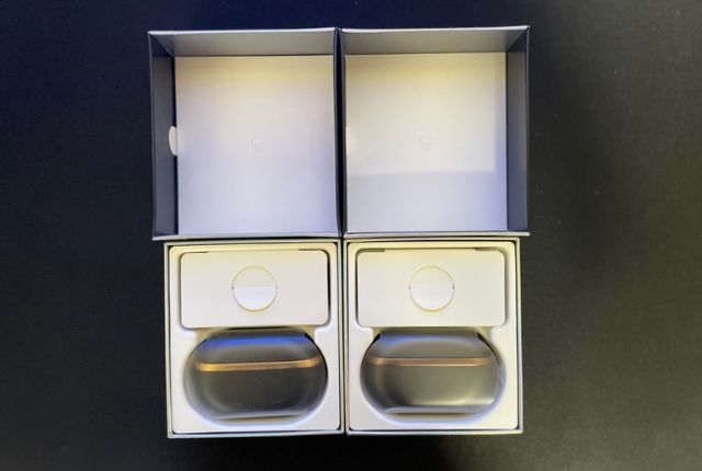 同時に箱開けてみました。ぱっとみ違いがよくわかりません。充電ケースと付属品の入った内箱が見えますね。
