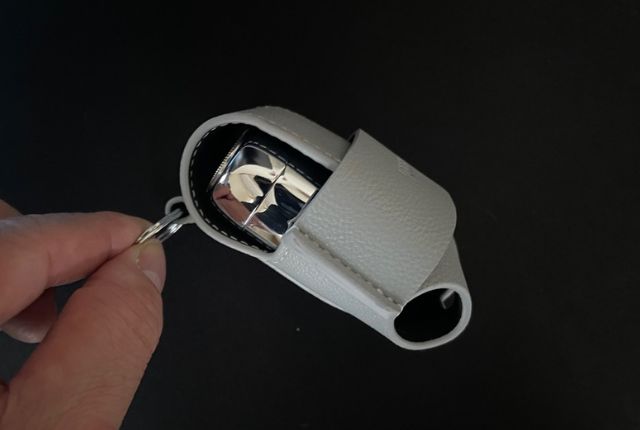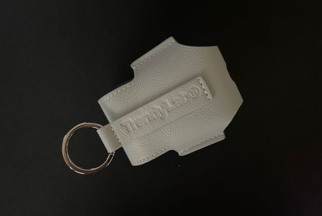 MINIシェーバーをケースに入れた状態。リングが付いているのでバッグなどに吊るすこともできます。