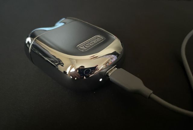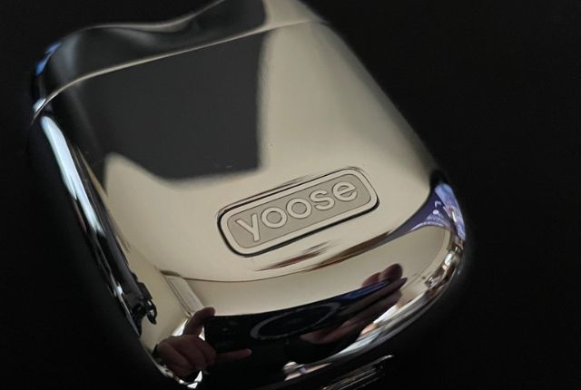 見惚れてしまうデザインです。緩やかな丸みのある筐体の下部には「yoose」のエンブレムが埋め込まれています。