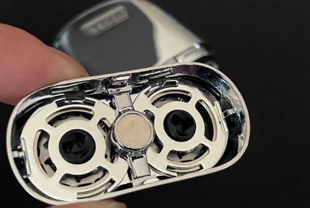 外したシェービングユニットのダブルリングアークブレードは肌にあてるとバネで稼働する仕組みです。